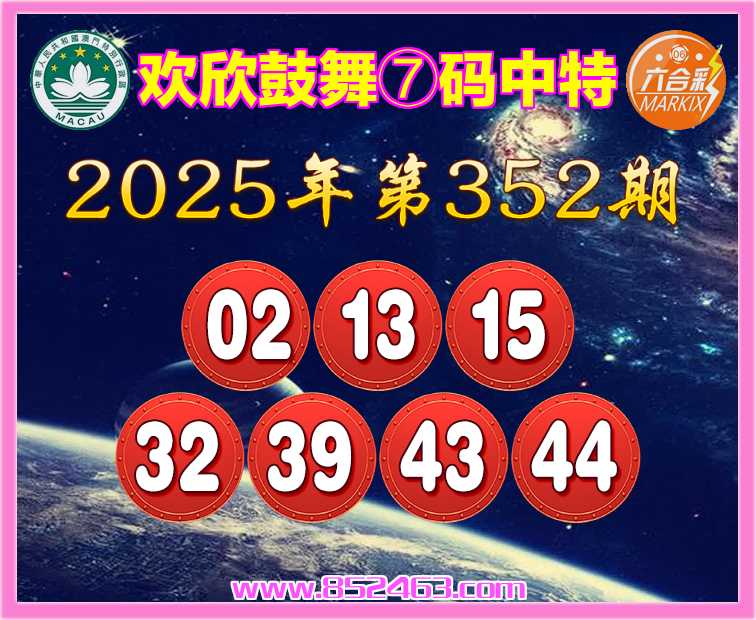 352期:『欢欣鼓舞』 🩴⑦码中特🩴【02.13.15.32.39.43.44】开:44准上榜高手