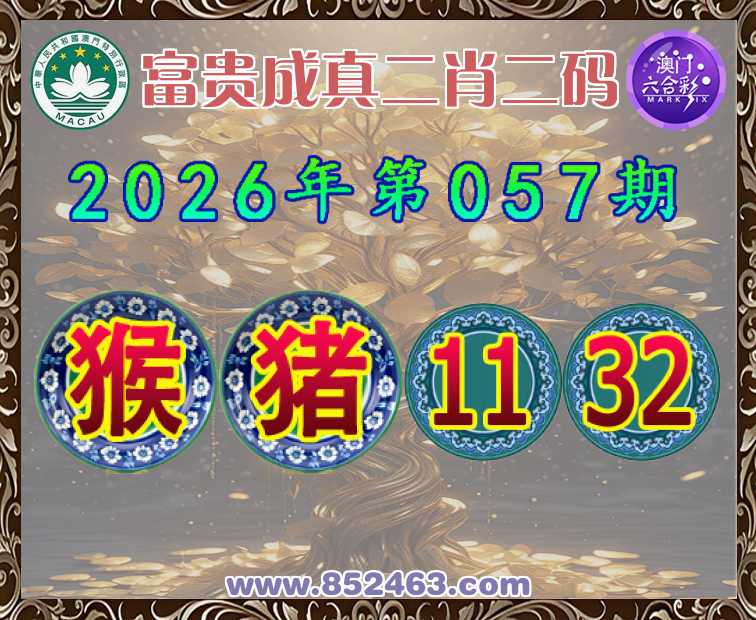 057期:《富贵成真》 🧦二肖二码🧦【猪】【11.32】开:猴23