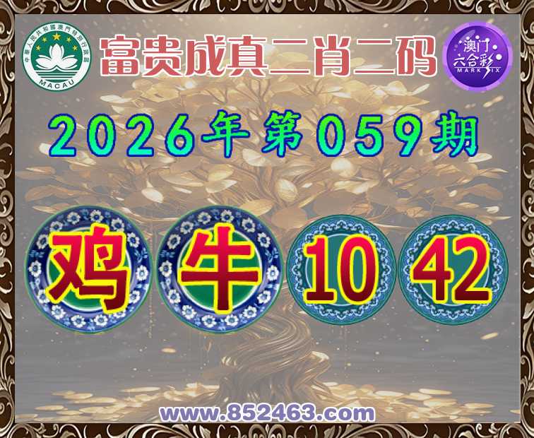 059期:《富贵成真》 🧦二肖二码🧦【牛】【10.42】开:鸡10