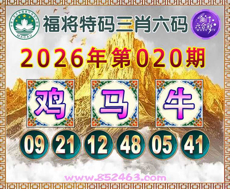020期: 👛『福将特码』 👛三肖六码👛【鸡牛】开:马12