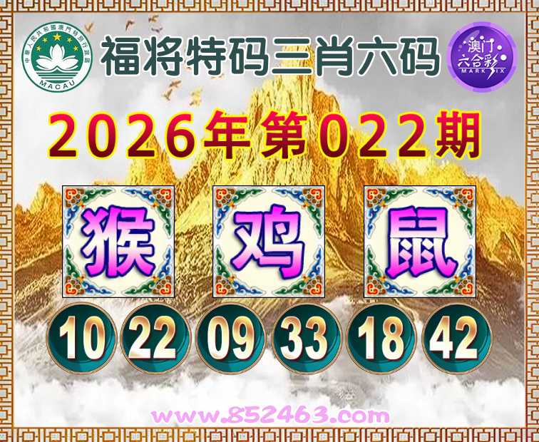 022期: 👛『福将特码』 👛三肖六码👛【猴鸡】开:鼠18