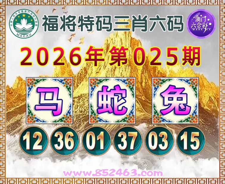 025期: 👛『福将特码』 👛三肖六码👛【马兔】开:蛇37