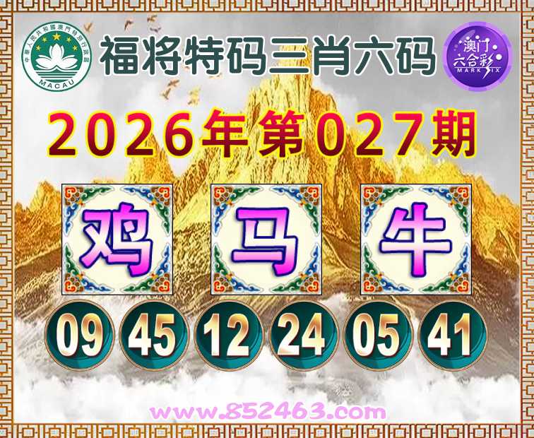 027期: 👛『福将特码』 👛三肖六码👛【马牛】开:鸡45