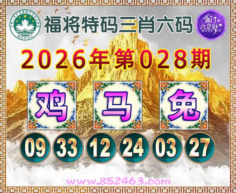 028期: 👛『福将特码』 👛三肖六码👛【鸡马】开:兔03