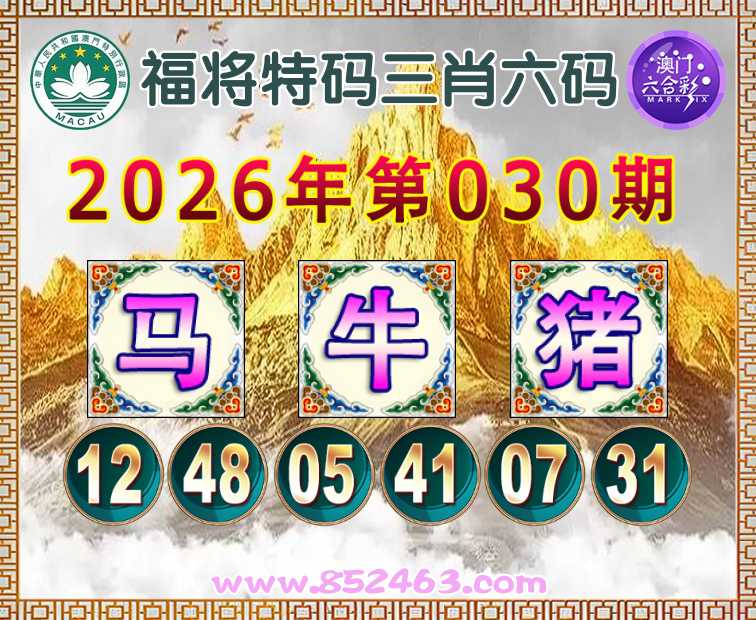 030期: 👛『福将特码』 👛三肖六码👛【马猪】开:牛41