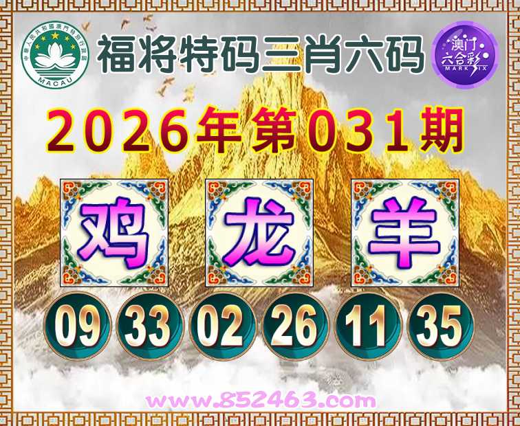 031期: 👛『福将特码』 👛三肖六码👛【鸡羊】开:龙26