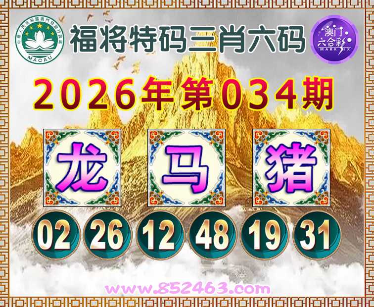 026期: 👛『福将特码』 👛三肖六码👛【狗马】开:猪19