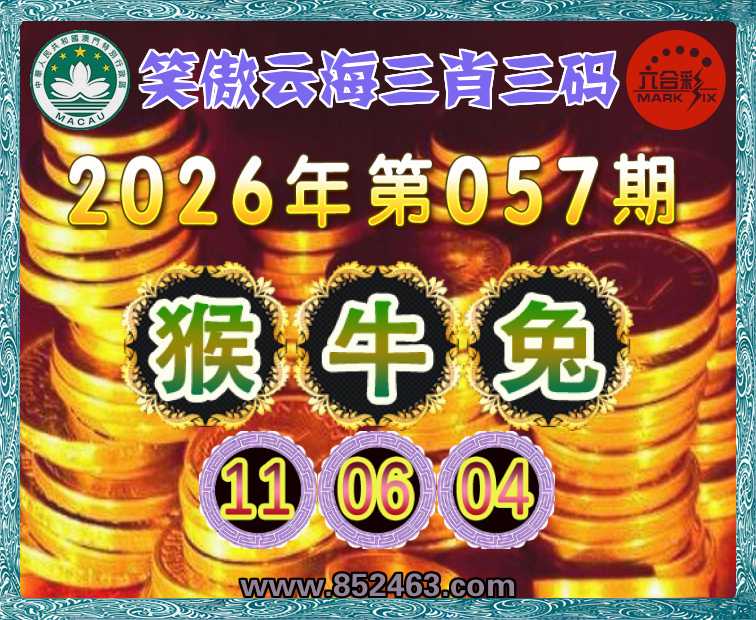 057期:〖笑傲云海〗 🌷三肖三码🌷【牛兔】【11.06.04】开:猴23