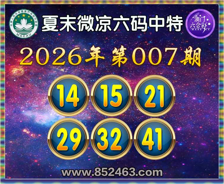 007期:〖夏末微凉〗 🧶六码中特🧶【14.15.21.29.32.41】开:41
