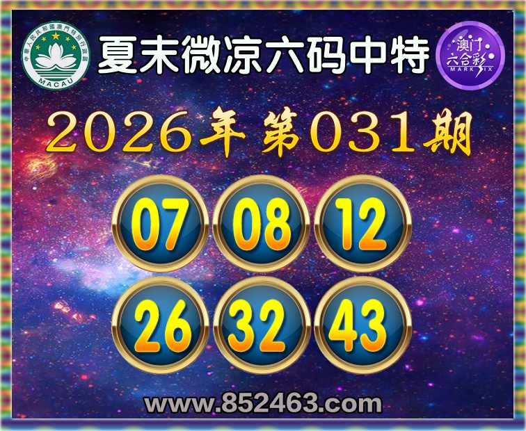 031期:〖夏末微凉〗 🧶六码中特🧶【07.08.12.26.32.43】开:26