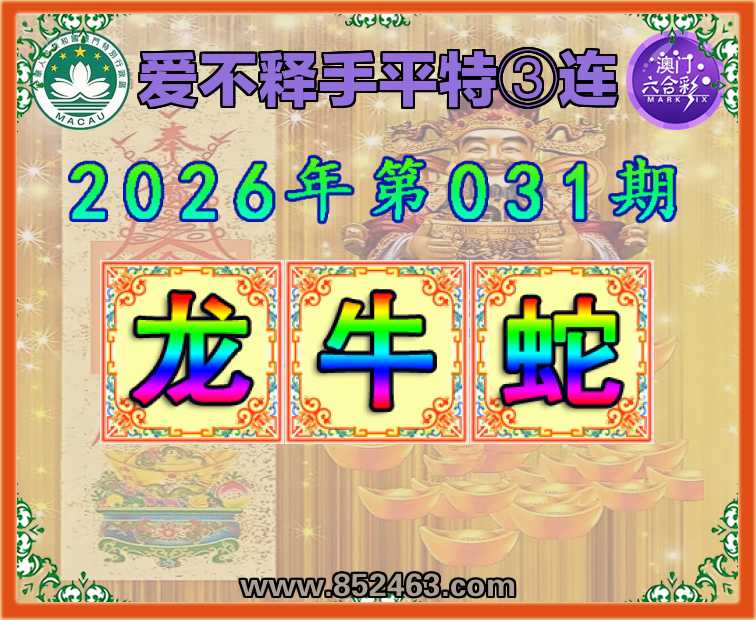 031期: 爱不释手 ⛩️平特③连⛩️【龙牛蛇】开:龙26,牛05,蛇25