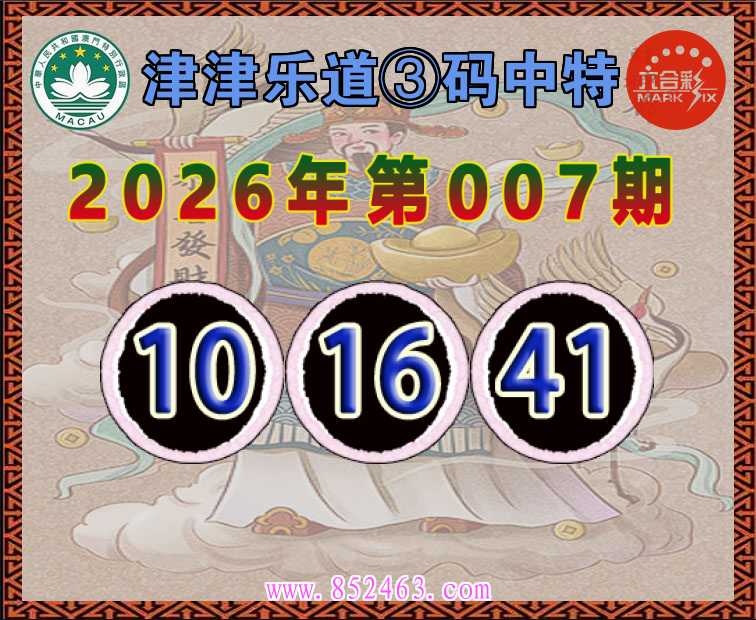 007期: 津津乐道 ♥️③码中特♥️【10.16.41】开:41