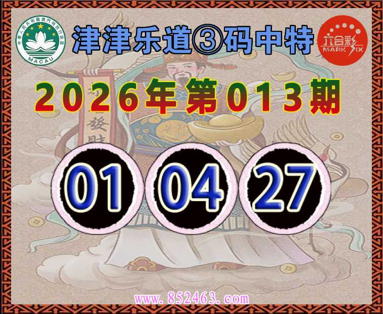 013期: 津津乐道 ♥️③码中特♥️【01.04.27】开:01准上榜高手