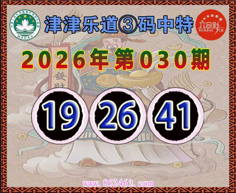 030期: 津津乐道 ♥️③码中特♥️【19.26.41】开:41