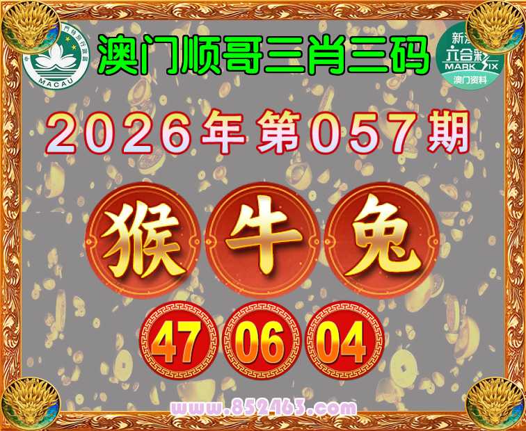 057期:《澳门顺哥》 🏆三肖三码🏆【牛兔】【47.06.04】开:猴23