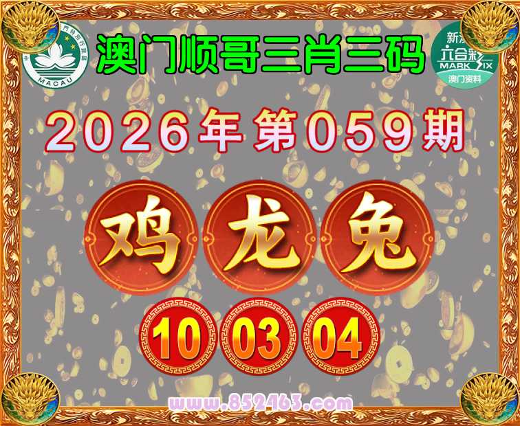 059期:《澳门顺哥》 🏆三肖三码🏆【龙兔】【10.03.04】开:鸡10