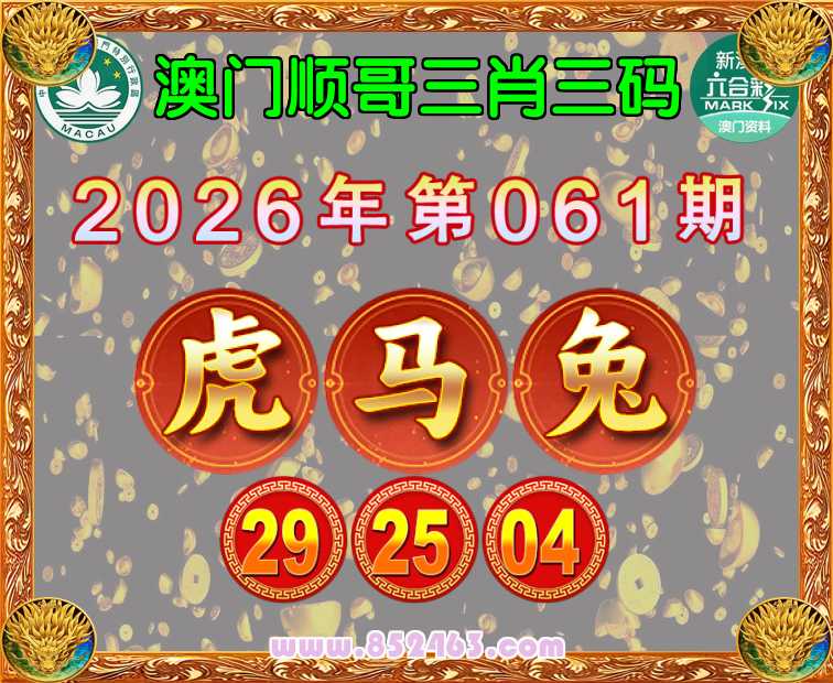 061期:《澳门顺哥》 🏆三肖三码🏆【马兔】【29.25.04】开:虎29
