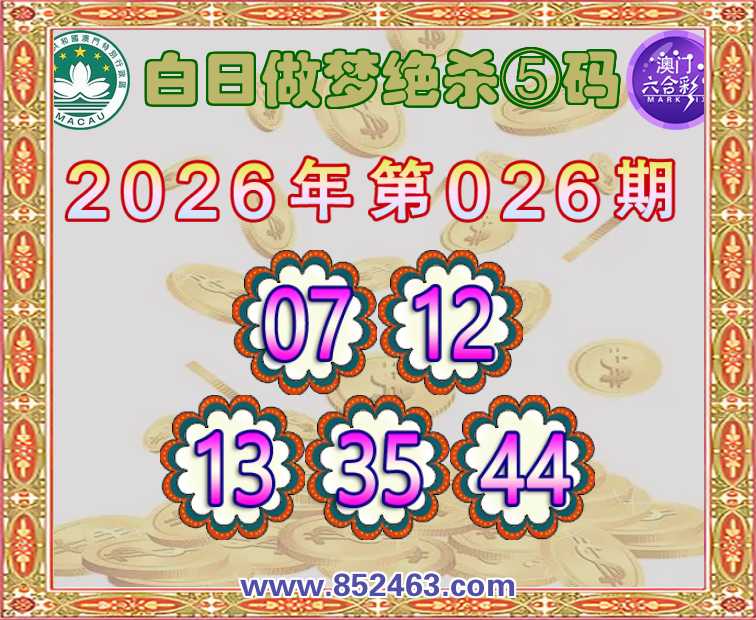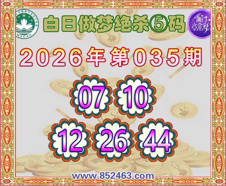 035期:【白日做梦】 🍀绝杀⑤码🍀【07.10.12.26.44】开:00准