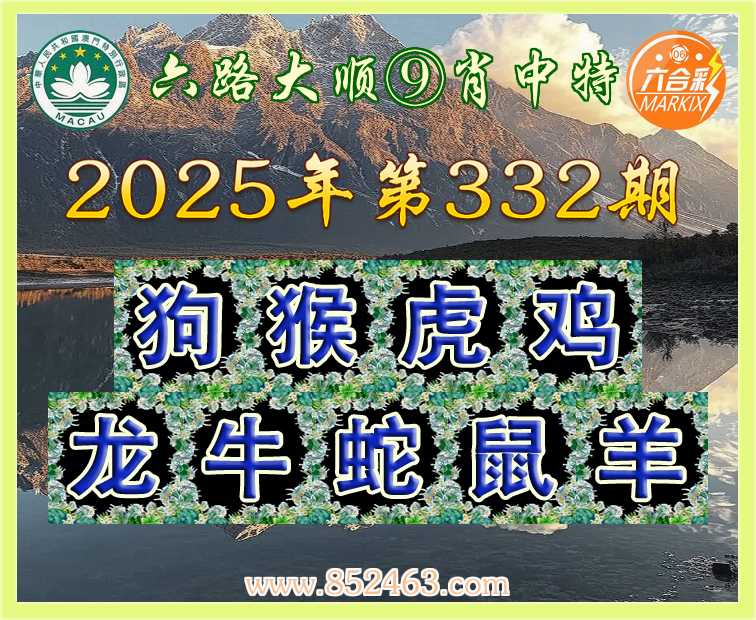 332期:【六路大顺】 🏆⑨肖中特🏆开:龙26准上榜高手