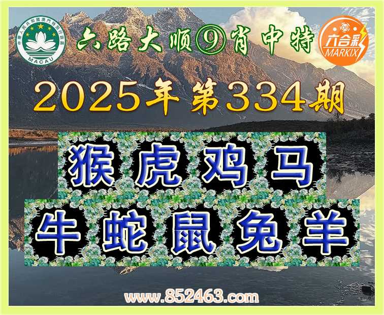 334期:【六路大顺】 🏆⑨肖中特🏆开:猴46准上榜高手