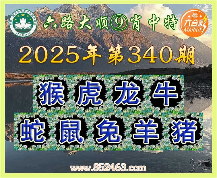 340期:【六路大顺】 🏆⑨肖中特🏆开:虎16准上榜高手