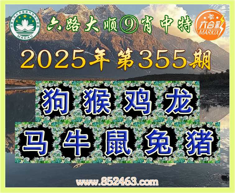 355期:【六路大顺】 🏆⑨肖中特🏆开:00准