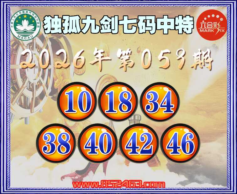 059期:【独孤九剑】 🚵‍♀️七码中特🚵‍♀️【10.18.34.38.40.42.46】开:10