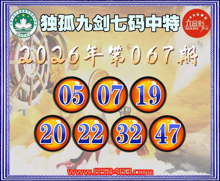 067期:【独孤九剑】 🚵‍♀️七码中特🚵‍♀️【05.07.19.20.22.32.47】开:05