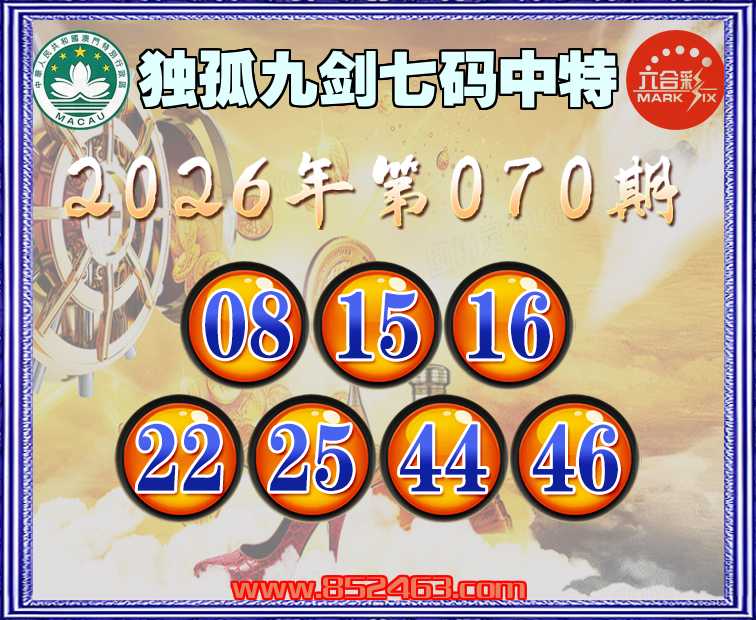 070期:【独孤九剑】 🚵‍♀️七码中特🚵‍♀️【08.15.16.22.25.44.46】开:25