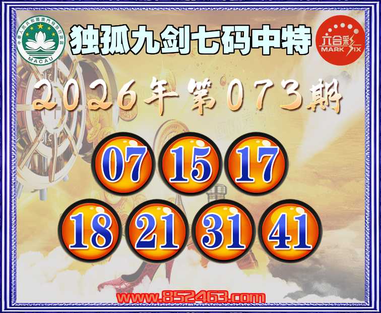 073期:【独孤九剑】 🚵‍♀️七码中特🚵‍♀️【07.15.17.18.21.31.41】开:34