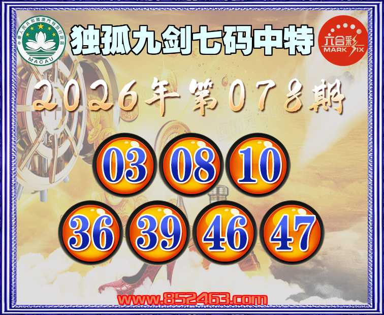 078期:【独孤九剑】 🚵‍♀️七码中特🚵‍♀️【03.08.10.36.39.46.47】开:46