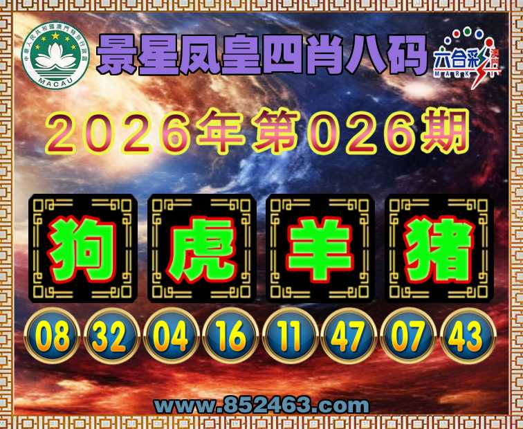 026期:《景星凤皇》 🧏‍♀️四肖八码🧏‍♀️【狗虎羊】开:猪19