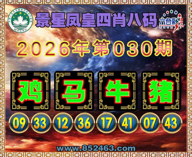 030期:《景星凤皇》 🧏‍♀️四肖八码🧏‍♀️【鸡马猪】开:牛41