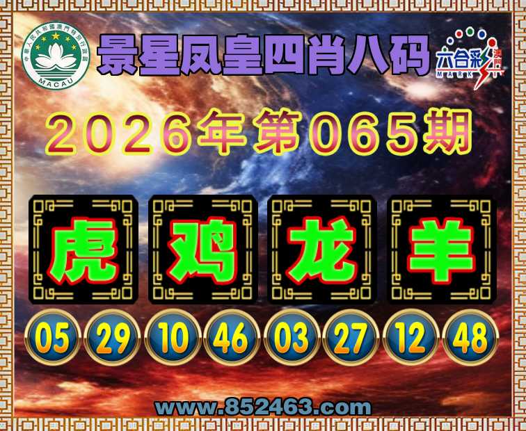 065期:《景星凤皇》 🧏‍♀️四肖八码🧏‍♀️【鸡龙羊】开:虎05