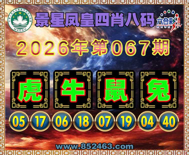 067期:《景星凤皇》 🧏‍♀️四肖八码🧏‍♀️【牛鼠兔】开:虎05