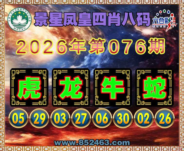 076期:《景星凤皇》 🧏‍♀️四肖八码🧏‍♀️【虎龙牛】开:蛇02