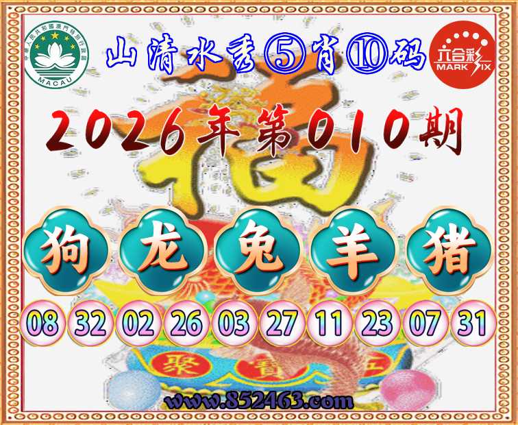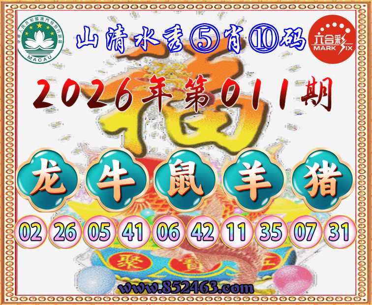 031期:  ♣️『山清水秀』  ♣️⑤肖⑩码 ♣️【猴鸡马羊】开:龙26