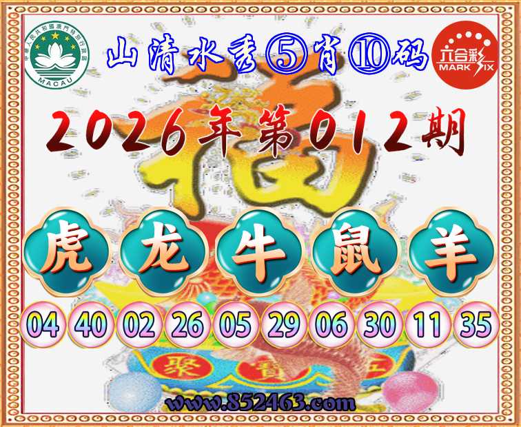 026期:  ♣️『山清水秀』  ♣️⑤肖⑩码 ♣️【狗虎鼠兔】开:猪19