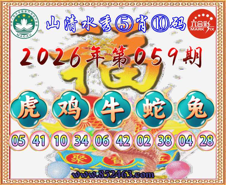 059期:  ♣️『山清水秀』  ♣️⑤肖⑩码 ♣️【虎牛蛇兔】开:鸡10