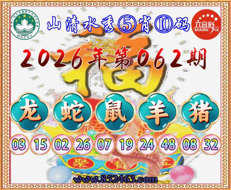 062期:  ♣️『山清水秀』  ♣️⑤肖⑩码 ♣️【龙蛇鼠猪】开:羊24