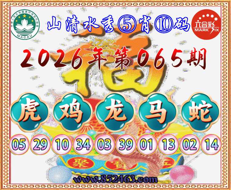 065期:  ♣️『山清水秀』  ♣️⑤肖⑩码 ♣️【鸡龙马蛇】开:虎05
