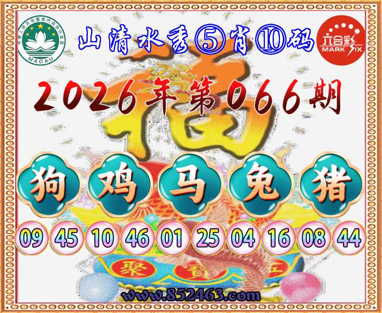 066期:  ♣️『山清水秀』  ♣️⑤肖⑩码 ♣️【狗鸡兔猪】开:马37