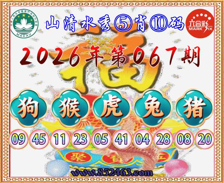 067期:  ♣️『山清水秀』  ♣️⑤肖⑩码 ♣️【狗猴兔猪】开:虎05