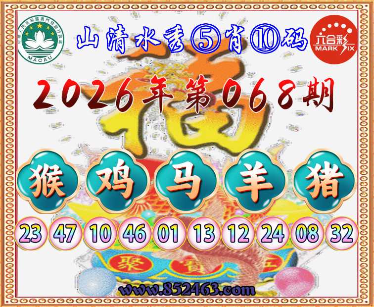 068期:  ♣️『山清水秀』  ♣️⑤肖⑩码 ♣️【鸡马羊猪】开:猴23