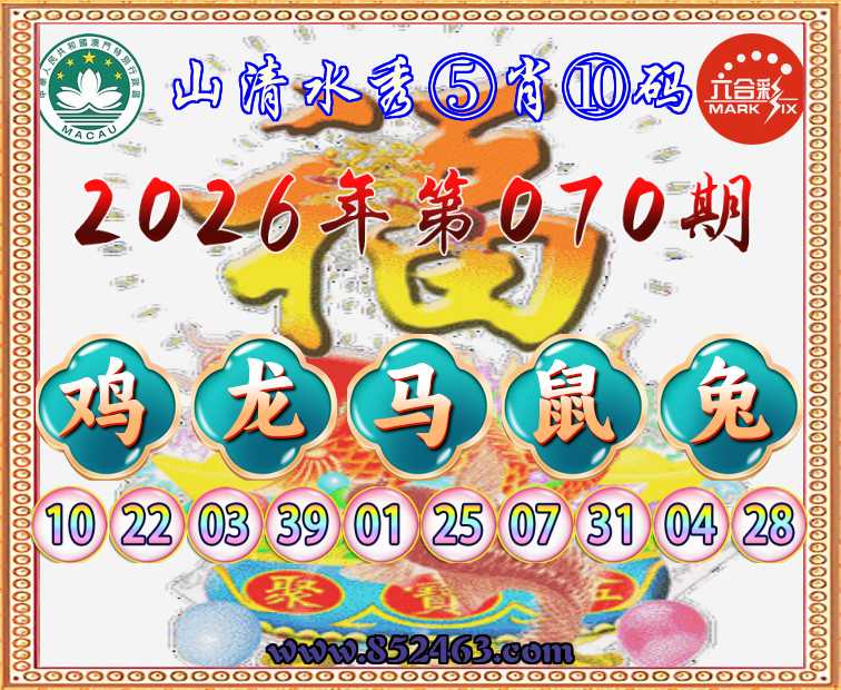 070期:  ♣️『山清水秀』  ♣️⑤肖⑩码 ♣️【鸡龙鼠兔】开:马25
