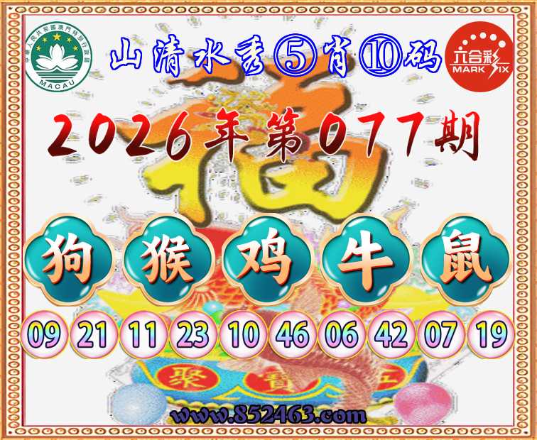 077期:  ♣️『山清水秀』  ♣️⑤肖⑩码 ♣️【狗猴鸡牛鼠】开:虎29