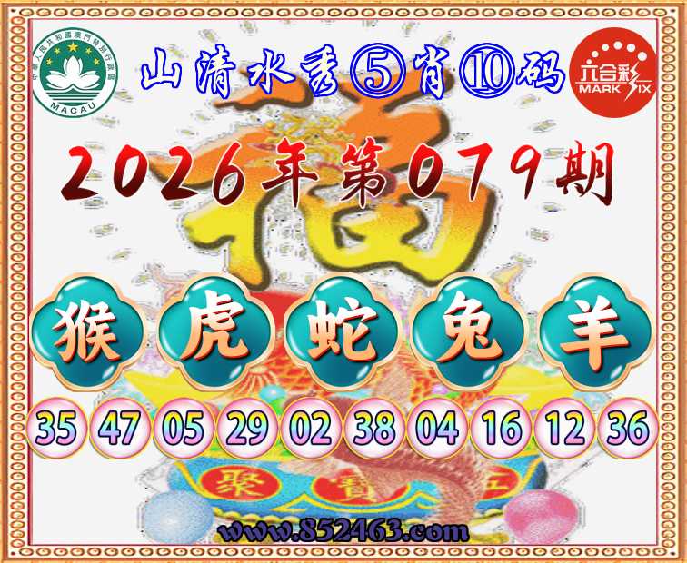 079期:  ♣️『山清水秀』  ♣️⑤肖⑩码 ♣️【虎蛇兔羊】开:猴35