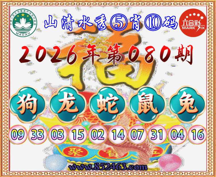 080期:  ♣️『山清水秀』  ♣️⑤肖⑩码 ♣️【狗蛇鼠兔】开:龙03