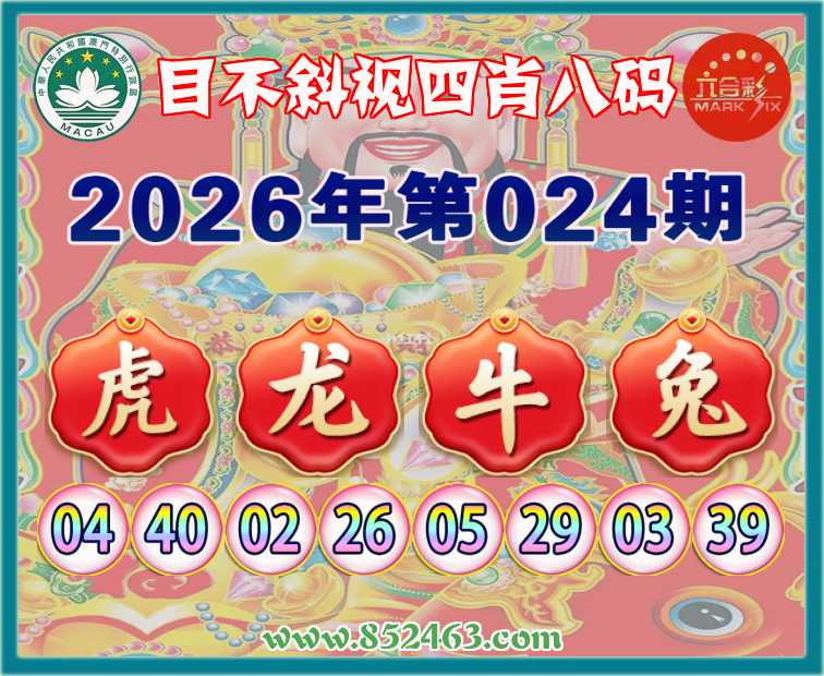 024期:《目不斜视》  ♣️四肖八码 ♣️【龙牛兔】开:虎28