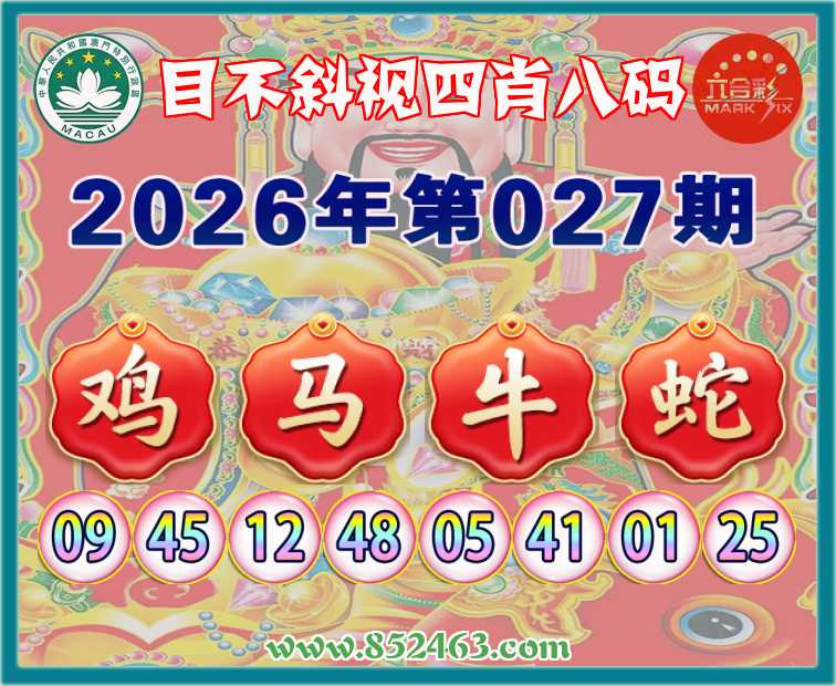 027期:《目不斜视》  ♣️四肖八码 ♣️【马牛蛇】开:鸡45